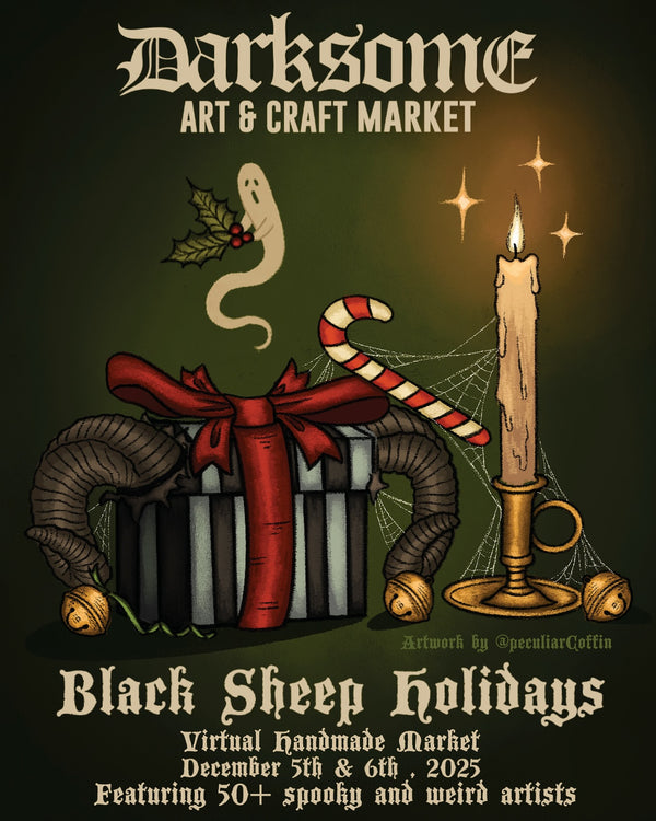 I will be summoning those specters, as well as working with a mix of winter folklore, such as the legend of the Yule Cat. Expect to see silver spirits, evergreens, pomegranates, giant cats, winter treats, and sparkly winter stars!